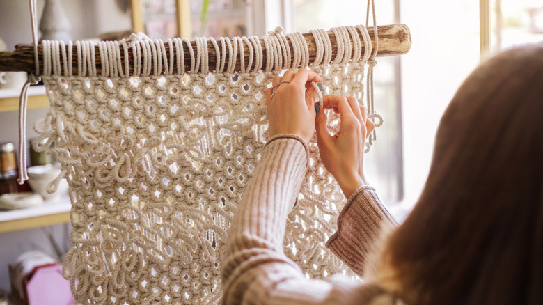 If your closet has ever been so full of clothes that you've had to lean against the door to get it shut, you're not alone. Whether your closet doors are old and ornery, oddly shaped and awkward, or you're just ready for a new look that's more cute than chaotic — look no further than a macrame curtain. From creating a unique room divider to surrounding your bed with canopy-style drapes, there are many smart ways to use curtains around your home. While you can technically swap your closet doors for a solid panel, designers and DIYers alike agree that macrame curtains add both functional coverage and an aesthetically charming look.