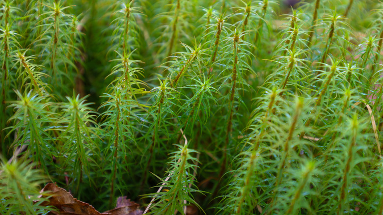 For clumping mosses, one popular option is cushion moss, which can refer to any species in the Leucobryum genus, such as Leucobryum glaucum. It grows in mounds that are dense, soft, and vividly colored. Another option with a similar appearance is rock cap moss, or the Dicranum genus. There's also haircap moss (Polytrichum spp.). Polytrichum strictum can withstand full sun as long as it's established in moist, clay soil. It can't withstand foot traffic, however. One last type of moss to consider is sphagnum moss, most famous for forming peat bogs and as a common component in potting mixes.