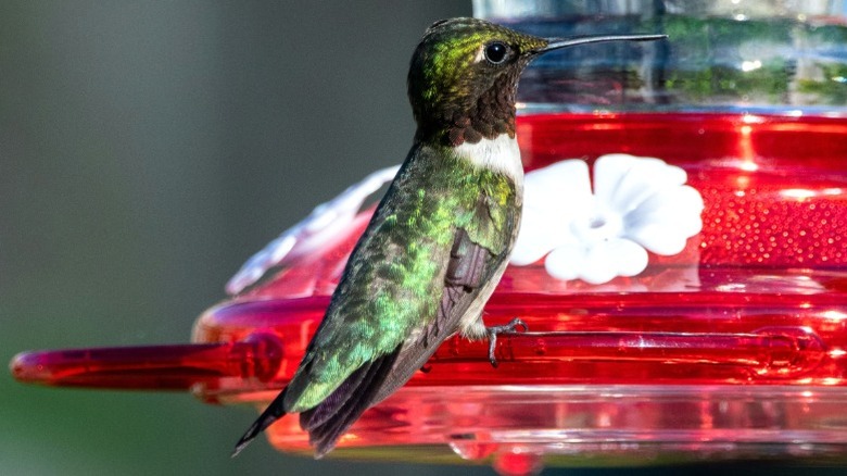 Set up hummingbird feeders a few weeks before the first expected sighting of the season. Use a simple DIY nectar of granulated sugar mixed with water in a 1 to 4 ratio. Boil the mixture for a few minutes before putting it in the feeder to slow potential microbial growth. Clean the feeders at least twice a week with a vinegar and water solution during the warmer months. You should change the food at a similar frequency or whenever it looks the least bit cloudy.