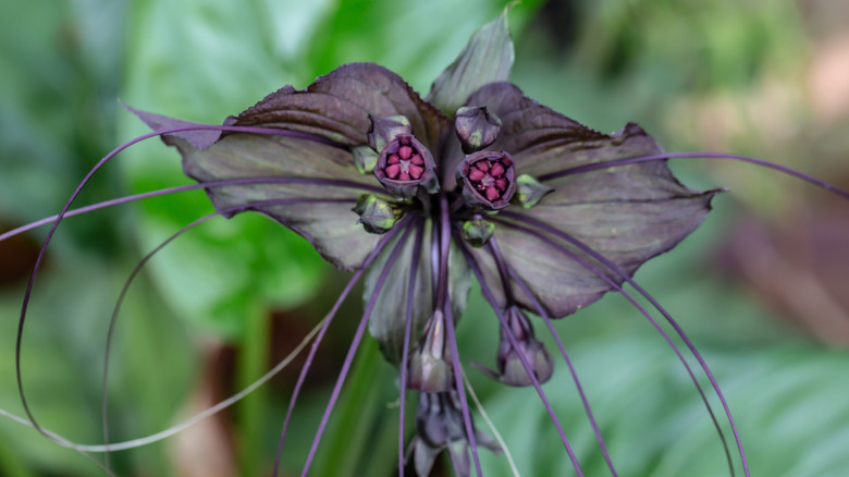 For those with a taste for the macabre, there's the black bat flower (Tacca chantrieri). Even if you can't quite figure out how the black leathery leaves and long whiskery tendrils come together to form a batty visage, this slightly off-putting, one-of-a-kind plant can still add plenty of interest to your home or garden. As with other tropical blooms, bat flowers grow best in the warm climates between hardiness zones 9 and 11. Like their namesake, bat flowers prefer indirect sunlight. They also require frequent watering to keep their soil damp.