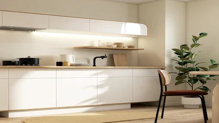 There is a wood beam for every kind of house and kitchen aesthetic, but choosing the right one for your particular space can be challenging. You might really like the look of wide, exposed wood beams, but such a statement fixture may not fit in a small kitchen with narrow cabinets like yours. Some homes can support the (literal and visual) weight of solid or reclaimed wood beams, which make for a great choice in rustic or farmhouse kitchens. Imitation beams come in a wide range of styles and work better for homeowners who don't want to go through the hassle of hiring a structural engineer for a remodel.