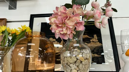 With small brushes, you can use other paints to create detailed designs. You can also buy laser-cut stickers from Dollar Tree, create a design using a Cricut, or purchase stencils if you're not confident in your artistic abilities. The Dollar Tree also offers plenty of other budget-friendly materials you can use to decorate your vase.If you're really feeling ambitious, you can also cover your vase with ceramic tiles. This works best for a square vase, because flat tiles aren't designed to cling to angled surfaces.All you need is some grout and colorful ceramic chips.