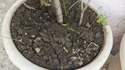 The simple three-step process to fix hydrophobic soil begins with breaking it up. Just as farmers use hoes to break up the hydrophobic layer in fields, you can do a small-scale version of this with an implement such as a pencil, skewer, knitting needle, or chopstick. Just poke holes evenly through the soil.