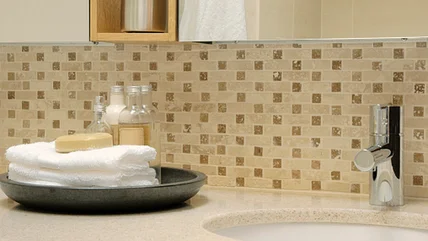 There are multiple benefits to extending the length of bathroom backsplash, the most obvious being that it provides a canvas for large and luxurious tile decoration. Wall space that would otherwise go empty can be covered to fit the budget-friendly half-tile bathroom trend. Tile can establish the room's elegance when applied to the upper half of the wall space surrounding the mirror by adding backsplash to your bathroom vanity. A longer backsplash will not only extend the opportunity for artistic expression, it will also provide a more functional bathroom experience. More tile installed on the wall will create a greater shield against water and splashes that could cause damage over time.