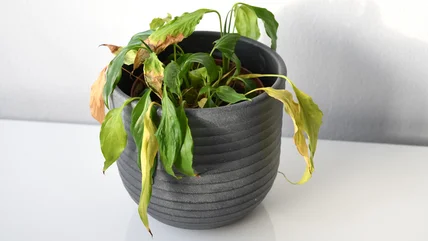 Whether your peace lily is swimming in water or has developed root rot, you'll likely notice similar above-ground symptoms. Initially, the leaves may start to wilt, with the lower and inner leaves turning yellow. Without intervention, the foliage may appear scorched, drop, and eventually the plant will die. Although these symptoms are also telltale signs you're underwatering your peace lily plant, wet soil is the indicator that these issues are due to overwatering. Stick your finger a couple of inches into the soil. If it feels soggy, it's a good sign the plant is overwatered. Although your peace lily may seem to be barely clinging to life after too much water, it only takes a few simple steps to revive it.