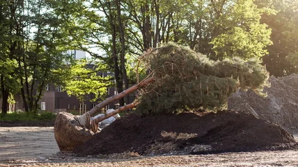 Moving a large tree with a trunk between 10 and 15 inches in diameter typically costs between $1,500 and $3,500. These trees can't be moved with hand tools, and professionals need to use specialized, truck-mounted equipment called a tree spade. This machine digs out the tree and its root systems in one clean motion, lifts it, transports it, and replants it. Transporting this type of machinery to a job site adds $500 to $1,000 to the total bill. For really large trees with trunk diameters over 16 inches, the total cost can skyrocket to over $10,000. Moving these giant trees may require cranes, custom support frames for the roots, and a larger crew, especially if the tree is being transported a long distance or needs to be lifted over a house.
