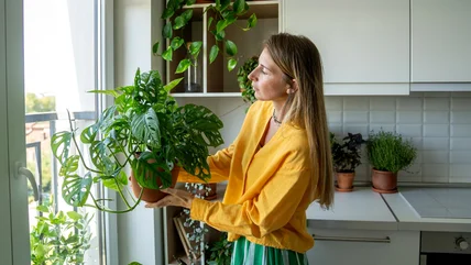 Stands do more than make houseplants look pretty and maximize space. A boost — even just a few inches off the floor – provides plants with better airflow and sunlight and protects floors from damage. Making your own wooden stand takes little time, a couple of tools, and virtually no skill if you follow a few easy steps. In fact, you can confidently cobble together your own simple plant stand even if this is your first time using a power tool if you follow one DIY that uses just three pieces of wood, some stain, and a bit of hardware.