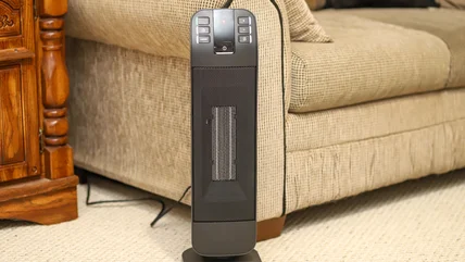 Reaching the top spot of Consumer Reports' space heater picks is the Lasko Artisan Series CX16550. This oscillating ceramic space heater is a budget-friendly option, at just under $70. It features two heat settings, an adjustable thermostat, and a 12-hour auto-off timer. The timer is a great feature, as forgetting to shut it off while you're away is one of the mistakes to avoid when using a space heater. An Auto-Eco thermostat maintains the desired room temperature while saving energy, making it an excellent pick for those who value energy-efficient appliances. One of its standout features, though, is its appearance. Rather than the boxy shape of a typical ceramic space heater, the heater portion is a black tower that sits on a decorative pedestal, seamlessly blending into the room.