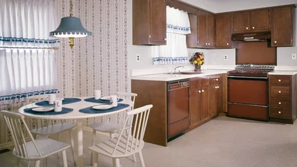 When you want to give your kitchen a dose of positive energy, you only have to take a step back to the '60s and '70s. It was a time when kitchens were unafraid and unapologetic. Earthy colors coexisted with splashes of orange and mustard yellow. Bringing these nostalgic elements back into your kitchen can spark memories of simpler times: Sunday dinners in the dining room, the bring-bring of a rotary phone, or the sound of a scratched record jumping on the player. Similarly to today's open floor plans, kitchens didn't have as many walls as they did in earlier decades. They were extensions of the living and dining rooms — and so was the decor.