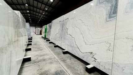 Salinas White is another good option for a more subtle design. This Brazilian stone doesn't have any large, ornate veins running through it. Instead, it is covered with light, tightly packed speckles of grey and taupe over a cool white color. Salinas White is generally a polished stone that is described as a snowy white with light pewter coloring. Because of the lighter coloring, it is generally used to create a bright element in the kitchen area for an open, upscale look.