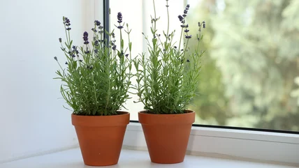 Sage (Salvia officinalis), a herb in the mint family, is a useful companion plant for lavender if you want to combine beauty with practicality. Both plants have leaves with a silvery or purple hue, meaning they look good when potted up next to one another on a sunny kitchen windowsill. What's more, compounds in sage's scent can boost that of lavender's. The herb is low-maintenance and easy to grow indoors from seeds or cuttings — though seeds will take longer. Like lavender, it prefers well-draining soil, especially in winter.