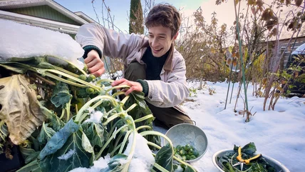Start them from seed successionally from February to June, and harvest from November to the following May. They take a long time to grow, but if you harvest them correctly, they crop all through winter and into spring. And, as with other brassicas, you can and should eat the leaves. It's free food, after all. Remember to net them against browsers and insect pests. And in very cold climates, add a fleece blanket for a little extra insulation. Once it's large enough, harvest the central head, similar to regular broccoli, to encourage the plant to put its energy into producing side shoots that you can harvest through winter.