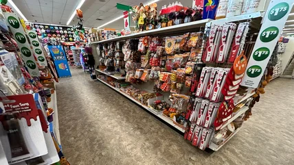 Dollar Tree's Crafter's Square wooden bead wreath creates the foundation for this craft, which you'll customize with silk flowers and greenery from the floral section. Trace the rounded bottom edge of the wreath onto a floral foam block, and cut it to create a section that will sit inside the beads. Use floral wire to hold the foam in place, and add your florals and embellishments. You can change the florals for the seasons, too. When you're done, hang it on the door or consider other fun places to hang your wreath.