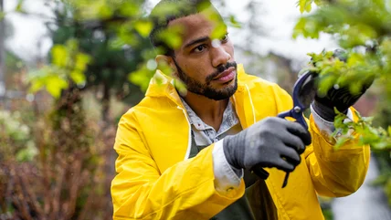 Pruning is an important way to keep your plants healthy and looking beautiful. But pruning after a rainstorm can have the opposite effect. Whether you're pruning shrubs or trees, in the spring or fall, summer or winter, it's best to wait 48 hours or more before pruning. Pruning exposes plants' inner tissues to the elements, leaving them vulnerable to pests and infections. Plants such as evergreen trees heal those wounds by producing resins which harden to create a scab over their wound. As with human wounds, it takes time for those resins to harden through evaporation. Moisture in the air can slow down that evaporation process, leaving plants vulnerable. So unless you need to remove dead, dying, diseased, or damage branches, save pruning for a sunny day.