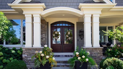 Let's imagine you are the prospective buyer as we tour your exterior entryway area and view it through buyer's eyes. You pull up to the curb. Can you easily see the house number? Could it be more stylish? Lots of ready-made and custom options are available for attractive house numbers that align with the look of your home. As you look at the house from the curb, where is your eye drawn? For many designers, the front door is an appropriate focal point, and you can make it so with a striking (but neighborhood-friendly) door color, scale, or design. Upgrading your front door yields solid cost recovery — 100% on a steel front door and 80% for a fiberglass door, according to the 2025 Remodeling Impact Report from the National Association of REALTORS. Check out the latest front door trends that will elevate the look of your home.