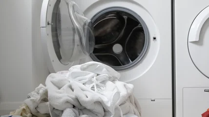 To try this hack, just add half a cup of baking soda directly into the drum of your washing machine before tossing in your clothes. From there, run your wash cycle like you normally would. That's it. In just one step, baking soda naturally balances pH levels, helps lift buildup from fibers, and softens hard water. It will break down residue and help your detergent work more effectively. The result is naturally brighter whites and fresher-smelling laundry without any added fragrances. It works especially well on everyday items that tend to look worn fast, like white t-shirts, pillowcases, towels, and cotton sheets.