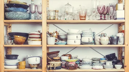 Open shelving is one of those design choices that gets mixed reviews, particularly when thinking about the 'ideal' designer home versus the one you actually end up using in your everyday life. For example, they are great for displaying pieces that you want to be seen, such as vintage or decorative ceramics, but they can also quickly get filled up with clutter, making your space feel overwhelming and stressful. In addition, open shelving is just that — open to the elements. Rather than being protected behind cupboard doors, the dishes and other items placed on open shelving can often get dusty or dirty quicker because there is nothing standing between them and the grime of everyday use. For these reasons you may want to think twice before adding open shelving to your kitchen or elsewhere in your home.