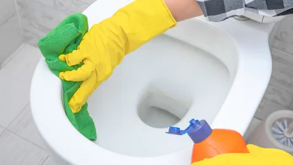 Cleaning the bathroom isn't a fun task, and the toilet is one of the more gross aspects of it. You may have discovered that there are some excellent toilet cleaning hacks that can make your bathroom sparkle. Scrubbing the bowl and wiping down the porcelain are necessary for your health, to keep your toilet working for a long time, and so that it doesn't hold onto stains or odors. Just when you think you've gotten your toilet as clean as it can be, though, you may want to think again. Maybe you've even noticed a lingering dirty smell after cleaning it. There is an overlooked part of the toilet where things like dirt, grime, hair, and moisture build up, and it's pretty gross: the base of your toilet, right where the toilet meets the floor.