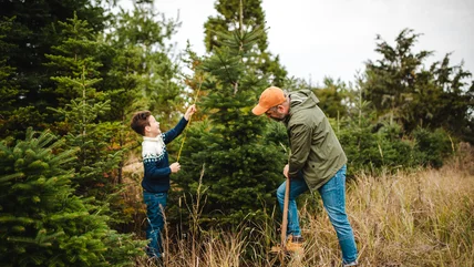 If you've just brought a Christmas tree home only to realize it's too tall to fit in your house, you're not the first one to make that mistake. It can be hard to estimate the height of a Christmas tree when you're purchasing it at an outdoor lot or Christmas tree farm. Don't despair: it's not difficult to cut a Christmas tree down to size to get it to fit in your living room. The key is to start from the bottom by cutting the trunk. It's a lot less work and lowers the risk of you ending up with a misshapen Christmas tree. Just be sure to do this work outside before bringing the tree indoors since this job can get messy.