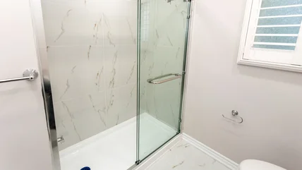 One very important issue with glass shower doors is one that many homeowners may not even think about. The area around the metal frame, especially the tracks, stays wet long after the shower is over. It is very common for mold and mildew to build up in those tracks, and it's not an easy place to clean. Some homeowners have used old toothbrushes to scrub inside the tracks, which adds more time to the cleaning routine. Even if you follow the easiest way to prevent shower mold and grime without harsh chemicals by drying everything after every shower, as soon as someone else takes a shower, the area is wet again. Frameless glass doors reduce this problem since there are no tracks, but mildew and mold can still settle in the hinge areas. For anyone with allergies or sensitivity to mold or mildew, these areas of buildup become more than just extra cleaning tasks; they become health concerns.