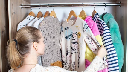 If needed, assemble your purchases according to the manufacturer's instructions. Start up high by simply placing the cube-style storage shelves atop the wire shelving. Depending on the shelf height, you could be working with four-cubby or two-cubby shelves. Then, arrange the shoe racks on the floor, flush with the wall and directly under the wire shelving. How you arrange these is customizable, depending on how big your closet is, how many shoe racks you bought, and your number of shoes. You can stack a few two-high, for example, or arrange them in a stair-step layout. The latter gives room to hang longer clothing, like dresses. Once all the shelving units and shoe racks are in place, use the cubbies up high to organize accessories — think hats, scarves, and purses. You could even put a few of your favorite pairs of shoes on display up there. Fill the shoe racks on the floor with your everyday footwear.