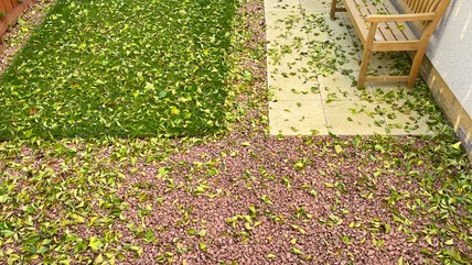 For this project, you'll be placing cut wood rounds within your designated patio zone, almost as if they were pavers. There are a variety of ways to go about slicing your discarded tree trunks into wood rounds. Use tools such as a circular saw, chain saw, saw jaw, or table saw to create 3 to 4 inch thick rounds yourself. If you go this route, make sure you're confident you can do so safely. There are also plenty of wood-cutting services you can take advantage of. Search for woodworking near you to find options. You can also opt to buy pre-cut wood rounds from your local timber supplier or online sources such as Etsy, but you might find these can be rather pricey.