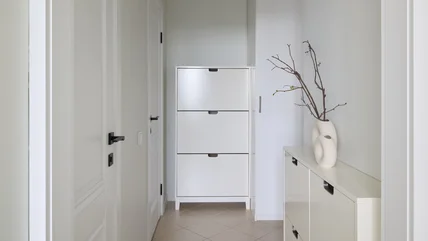 Since contact paper comes in endless patterns and colors, this self-adhesive, commitment-free material is perfect for making quick and easy updates to any standard IKEA shoe cabinet. In turn, it helps liven up your space. Once you find a design that matches your aesthetic, wipe the cabinet clean with a soft cloth and some mild soap and water. Then, measure panels that are large enough to cover the surfaces of the unit, including the doors of the compartments. Carefully apply the panels to all of the surfaces, preventing any bubbles from forming by using the plastic putty knife to smooth them out. Cut off any excess with a cutting tool to make sure the adhesive really sticks to the cabinet. That way, it won't peel off prematurely.