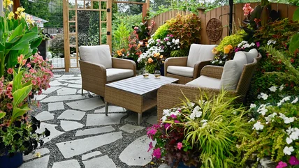 Now comes the stuff that makes the biggest difference: pavers, tiles, bricks, or stone. Concrete pavers, for example, might be as little as $2 per square foot, whereas natural stone can be $20 or more. If budget is a concern, one cost-effective approach is to use a mix of gravel and flagstones. There are several types of gravel to choose from to create an aesthetic that works with the rest of your yard.