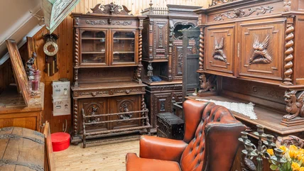 If you love the quality of vintage furniture but your style leans more modern, you're likely looking for tips to help you successfully flip vintage furniture. Transforming a thrifted hutch can seem complicated — it's a huge piece of furniture, after all. But you can do it in just a few key steps. Enumclaw-based furniture restorer Remy Bradley, known as @remyrestores on TikTok, created an easy-to-follow tutorial on how to create the curio cabinet of your dreams. You remove any ornate details, cut the edges straight, paint the cabinet black, and add some mid-century modern legs. If you don't already have a hutch to renovate, hit the thrift stores and estate sales or peruse Facebook Marketplace.