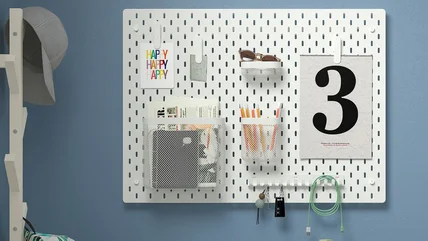 Working from home these days? The IKEA SKÅDIS pegboard is the home office essential that will keep your desk organized and clutter-free. Use it to manage office supplies like tape, paper clips, and sticky notes, as well as tools such as scissors and staplers that are often shoved into a drawer. If you and your partner share an office, consider installing separate pegboards, so each person can organize in a way that makes sense to them. Should you find that a configuration isn't optimal, the shelves, containers, and bins can be rearranged quickly.