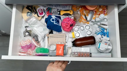 To best use them, declutter your junk drawer with a simple 30-minute method so you know what needs to be stored. Then, measure your drawer and mark the divider where any cuts need to be made. After cutting, insert the pieces from largest to smallest, starting with a large square that you'll divide as you go. Adjust as you go and check that the items you plan to store fit. Consider labeling the sections using a genius way to make chic home labels without a label maker to complete your drawer's transformation. And finally, be sure to keep all of the extra pieces so you can change your grid to accommodate different items and drawers over time.