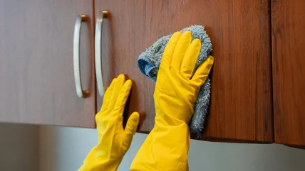 Wood cabinets are a significant investment, so you want to give them proper care to keep them in good condition and looking their best. The goal with cabinet care is to protect the wood without damaging it, and using the wrong products can cause more harm than good. When a noticeable layer of dust or residue builds up, many people look for the easiest way to clean their wood cabinets. Store aisles are filled with a variety of wood cleaners and polishes. However, some contain ingredients that may leave a residue or even damage your cabinets. When choosing a cleaning product for your cabinets, avoid any polish containing silicone.