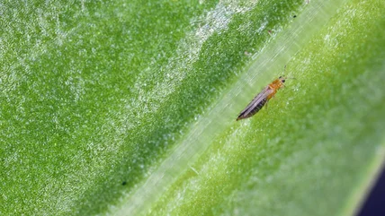 Thrips are tiny insects that are particularly hard to see, but they can cause serious damage to your plants. These small pests reproduce through eggs that can remain dormant for weeks on unplanted bulbs. To make matters worse, they are asexual. A single female can lay eggs that will produce offspring, making them especially hard to get rid of. If left untreated, thrips will feed on your plants until the blooms and fruit become disfigured. You may also notice brown spots or silvery streaks on the leaves where the thrips are feeding. This scarring is a telltale sign your plants have thrips. What can you do about it? You can use a few specific household cleaners, like dish soap or Lysol, to remove thrips larvae from your bulbs and prevent future infestations before you even put them in the ground.