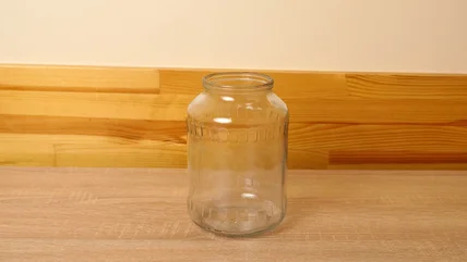 Your first order of business is taking off that pesky label. You can remove it with a straight razor, but this can be tedious and often leaves behind stubborn residual adhesive. Easily remove labels from glass jars by heating it up with a hair drier and peeling it off. If that doesn't do the trick, try creating a DIY goo gone solution. All you'll need is baking soda and vegetable oil. Mix 2 parts baking soda with 1 part vegetable oil. It should form a thick paste. Soak your jar in warm soapy water for 10 minutes and peel off the majority of the label. Spread on your DIY goo gone and allow it to sit for another 10 minutes. Now all that sticky residue should scrub right off with soap and warm water.