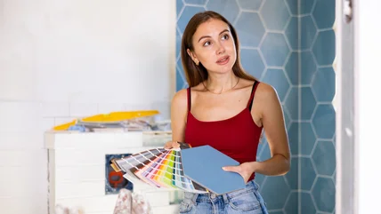 Silicone paints are great for wet areas thanks to their water-resistant properties. The breathable layer protects the tile while wicking away water, which allows it to stay attached. You simply have to clean and dry the surface before applying the paint, which will form a durable, long-lasting layer. This type of paint is also ideal for outdoor tile surfaces because it's resistant to fading from UV exposure.