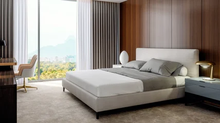 A basic hotel room meets a traveler's needs. Well-designed rooms have a bed, a closet, someplace to sit, and a stand of some sort, be it a dresser or a plain console table, for a television. The guest's first impression is guided by the room's function and cleanliness. After that, a traveler probably takes in the quality of the floor covering, how nice the bedding is, and the decor style. What the headboard looks like may be the last thing they notice unless it's in some way striking, but the headboard and the bed anchor the room. They make a design statement, whether the style suggests the simple lines of mid-century modern decor or the cozy look of a padded spot to rest your back on. If the headboard in your bedroom is an afterthought, you might want to take a lesson from clever hotel design.
