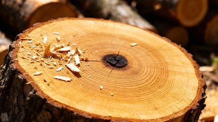 To start, you'll need two wood rounds. You can cut the wood rounds off a stump or a large limb. The first wood round should be about two inches wide, while the width of the second should be at least twice that width. Then, you'll need a power drill, a 1/16-inch drill bit, a 3/8-inch spade drill bit, a pencil, a bottle of wood glue, and a pack of 3/8-inch dowels at least 3 inches long. Savvy carpenters can even skip the store and DIY their own wood dowels. The next step is to split each cross-section in half to form two semicircles. You can use an axe, but if you want to be more precise, use a table saw.