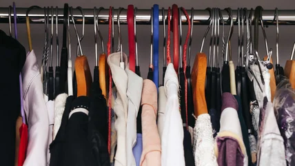Before hitting the panic button and completely gutting your closet, simply leave the closet door open for an hour after you shower or while you're doing laundry. Ideally, leaving the door open longer will maximize fresh airflow. Additionally, when hanging your clothes, avoid packing hangers tight against each other. Aim for one inch of space between garments to allow air to circulate. You can also make the switch to wire shelving if you don't already have them — this will allow air to flow vertically.