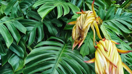 The monstera (Monstera deliciosa), the National Garden Bureau's 2025 choice for houseplant of the year, goes by many names. Because of the shape of its leaves, the tropical native is sometimes called the cutleaf philodendron or split-leaf philodendron, but it's more closely related to calla lilies (Zantedeschia aethiopica), elephant ears (Colocasia esculenta), and the corpse flower (Amorphophallus titanum) than to philodendrons. When grown indoors, the climbing plant will reach up to 8 feet tall under ideal conditions. Along with enough light and water, monsteras benefit from fertilization with a balanced formula specifically made for foliage plants.