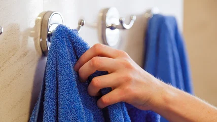 There are two things that you can do to prevent mildew from setting in. Firstly, when you use a fresh towel (or one that you're not yet ready to wash), hang it up to dry. Make sure there are no folds in the fabric that could trap moisture, and ensure that whichever room it's hung in is well ventilated. If your bathroom struggles to vent steam after a shower, then hang your towels elsewhere. The second tip, for wet towels that need a clean, is to put them on to wash immediately. Don't leave them piled in the hamper, and definitely don't leave them in a hamper with other clothes. The last thing you want is an outbreak of mildew in your wider wardrobe!