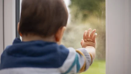 Sheets of contact paper applied to a window, sticky side out, act as a base to hold these translucent shapes to the window, making them into faux stained glass art. The magnetic edges on the blocks will help hold a design in place along with the contact paper. To piece together your own pretty fingerprint (or nose and pawprint) barrier, purchase a high-quality clear contact paper, clear double-sided tape, and at least one pack of 25 magnetic blocks. Also set aside scissors and glass cleaning supplies.