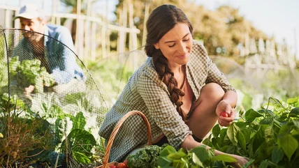 If you grow your garden in raised beds, mulching between them with fallen leaves is the perfect solution for soft, comfortable pathways. You can transport the litter to your path with a large canvas garden tote, such as the Heavy Duty Yard Waste Tote by Nizeluk, or a wheelbarrow. If you don't have very many trees around your home, check your neighborhood in the fall — your neighbors may have bagged their own leaves as yard waste and probably won't mind if you use them for your veggie patch. Avoid shredding the litter if possible because there are small, beneficial creatures like fireflies and larval butterflies that live in this layer of organic material.