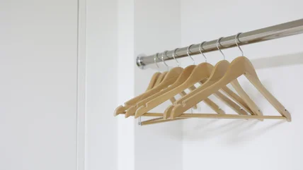 To do this hack, you'll need a hanger, but not any hanger. Steer clear of triangle hangers with a bottom section, which would prevent you from using the arms to hold items. Instead, use a simple hanger made of two long pieces and a metal hook. Ideally, you'll want to use a wooden hanger to be able to drill it in place. If you've only got plastic hangers to use, you can adapt this DIY by using glue instead of screws. Similarly, this won't work as well with flat hangers like those used to clip pants and skirts. Instead, you can reuse clips on plastic hangers around the house or garage to hold up rags, towels, or work gloves.