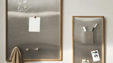 A household command center is essential, and often the fridge serves as a makeshift location. If you've just bought a non-magnetic fridge, you've lost that spot. A wall-mounted and framed metallic board is the perfect solution. While Zara isn't known for exorbitant prices, their products still don't come cheap. If you're even a little handy, you can affordably DIY some of their most popular homewares. One such easy project is making a dupe of Zara's Magnetic Slate with Wooden Border, which sells for $79.90 or $99.90, depending on the size you choose. You can make your own nearly identical piece for half the price — or maybe even less — with a piece of sheet metal and a wooden picture frame.