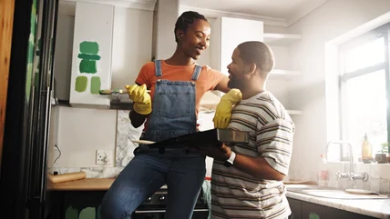 Want to bring this moody look to your space without a full renovation? Gutierrez says that painting your kitchen cabinets is the easiest way to update your kitchen with this up-and-coming trend for 2026. "I would paint the lower cabinets a bold color and leave the upper cabinets in a wood tone." And if you're not ready to commit to a cabinet change, Gutierrez says you can simply make the backsplash tile the color moment. That might mean covering it with a simple option, like MoonFun's Self-Adhesive Wall Tile. The existing backsplash can also be painted in a shade of crimson. If you opt to do this, be sure that you properly prep before you paint tile for the best outcome.