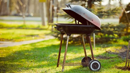 The first step is to clean up your grill. If the rusted, well-used aesthetic fits your yard, then leave it as-is. If you want a pop of color or you're not a fan of the shabby look, a fresh coat of paint is in order. Leave it a solid color or turn it into something fun and whimsical, like a watermelon, with a few extra accents.