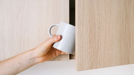 Once you've found the perfect wine rack, it's time to disinfect and clean. Give it a once-over with your vacuum, then use a disinfectant to wipe it down. If the wood is sealed, most wood-friendly disinfectants, like Pine-Sol Multi-Surface Cleaner, can be safely used. If you have pets (Pine-Sol can be mildly toxic to cats and dogs), instead try a DIY mix of white vinegar, water, and whatever dish soap you have. Wipe dry, then position the rack in the cupboard. Organize your mugs by color, use, size, or even give each person in the household their own shelf to keep your collection neat and tidy.
