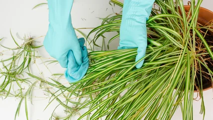 If you own a spider plant (Chlorophytum comosum) or two in your home, then you know just how low maintenance these houseplants can be. Known for their easy dispositions, spider plants are often lauded as the perfect indoor houseplant, as they are extremely forgiving and can thrive in a wide variety of environments. That being said, there are a few small tasks a spider plant owner may want to undertake in order to boost the health and appearance of their plant. Like any other stationary item, a spider plant can be a secret dust magnet in your home. The easiest way to clean your spider plant is to dampen a soft rag, like a microfiber cloth, and gently wipe it along the leaves to remove any dust.