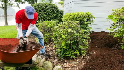 Mulching reduces weed growth and holds moisture for your plants. It also makes your landscape beds look consistent. That's why the type of mulch you choose is important. For example, red is the one color of mulch that's making your yard look outdated. Dallaire agrees, sharing, "I think bright red mulch and overly bright green grass can make an otherwise beautiful yard look dated. These colors are not commonly found in nature, so they can feel disconnected from the rest of the landscape." He notes that the harsh colors can become overpowering.