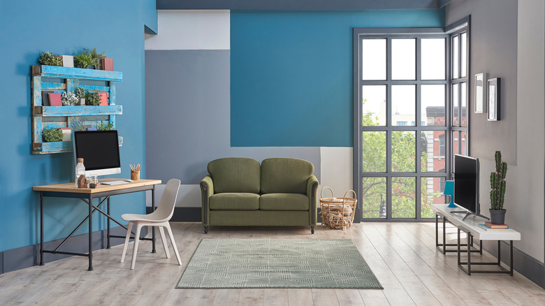 Wallpaper and paint come in a wide selection of choices. Whatever theme, color, or look you want, both techniques feature dozens of options and require you to make decisions. For paint, for instance, think about if you want a matte look or something more glossy. While glossy cleans well, the paint isn't impervious to jostling and well-traveled areas might show the chips and scratches people or things left when they hit or scraped the walls (via Real Simple). For wallpaper, you can opt for several material types including vinyl (for example, either solid or vinyl-coated fabric or paper), paper (non-woven, grasscloth, etc.), or metallic. Typically, wallpapers with vinyl keep well and are perfect for high-traffic places where the grubby hands of children touch everything (via Sweeten Stories).